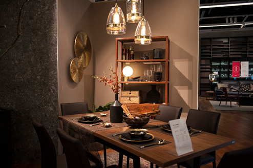 走进卖场,首先迎来的是汉森家具馆。有别于其他品牌将家具单独展示和销售,汉森家居以空间的概念,将所有建材、家具、生活用品等全品类产品进行整体空间展示,为消费者提供更多的家装灵感。馆内陈列了全屋的各个空间,有高端稳重的客厅、温馨而不失格调的餐厅、充满童趣的儿童房、简约大气的书房……等等,且每一类空间都有多种风格展示,根据人生各个阶段设计,包括新婚、婴儿、幼儿、小学、初高中等各阶段,满足处于不同阶段的家庭的居住需要。