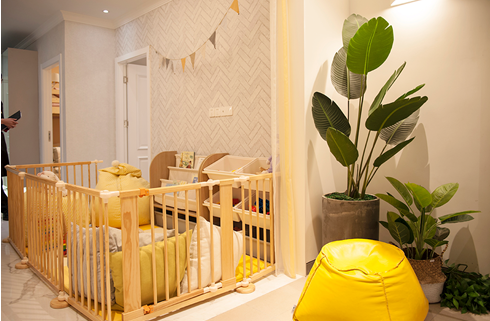 而当宝宝出生了,在1岁之前,家庭主要考虑的是安排婴儿出生、有老一辈过来照顾的空间。下面是宝宝0-1岁阶段的汉森样板房。